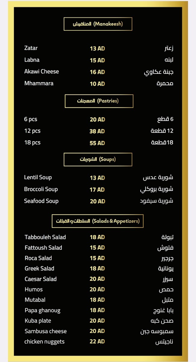 But the offerings don't stop there! For a taste of tradition, indulge in their assorted Manakeesh options, including the aromatic Zaatar and creamy Labna, or opt for the 12 Pcs Manakeesh platter to share with friends. The ambiance is accentuated by a stylish décor that adds an elegant touch to your dining experience.